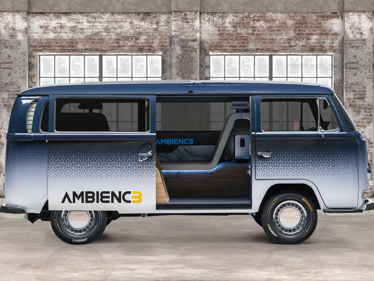 Pleasant, clear lighting effects provide orientation. Smooth, uncluttered surfaces present themselves in bright natural colors – seats, couch, tables, floors, doors and headliner. In this vehicle interior, everything is perfectly coordinated. An environment that invites you to linger and promises comfort. This converted VW T2 Bulli named AMBIENC3 is only “retro” from the outside, inside it offers a view of the future.